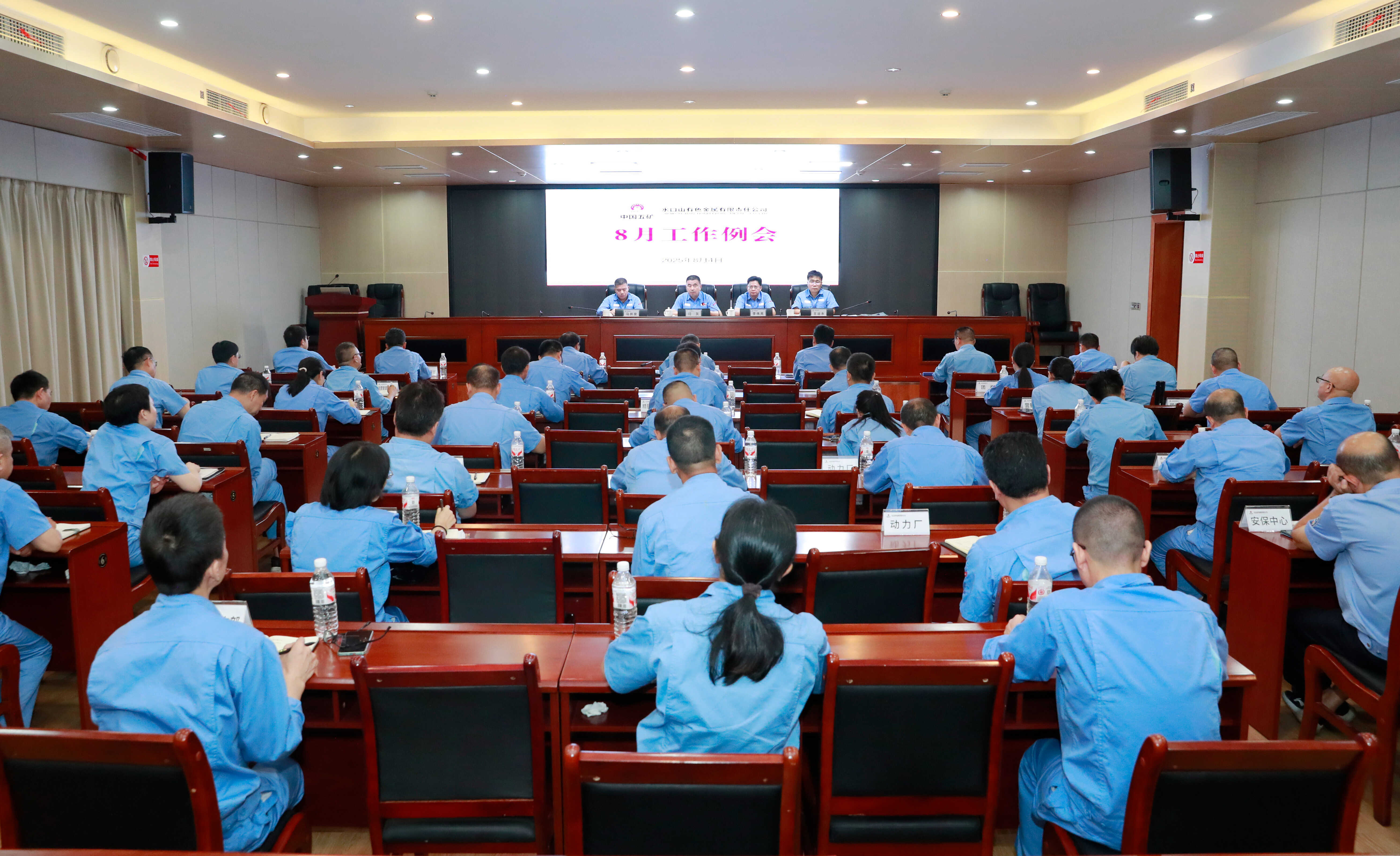 8月4日,公司在工人文化宫二楼会议室召开8月工作例会。公司领导闫友、李伟亮、马井泉、王运永出席,总经理助理、机关职能部门负责人以及各单位党政负责人、党组织副书记参会。
