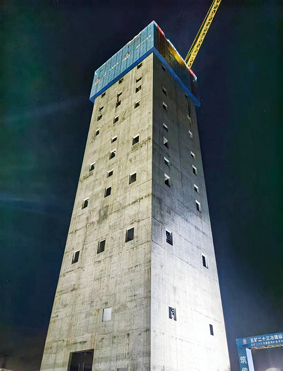 主井井塔楼为康家湾矿技术升级改造工程项目采矿系统关键单位工程,设计高度71.60米,采用钢筋混凝土框架结构。该工程于今年2月6日开始动工,计划9月30日完成土建项目。