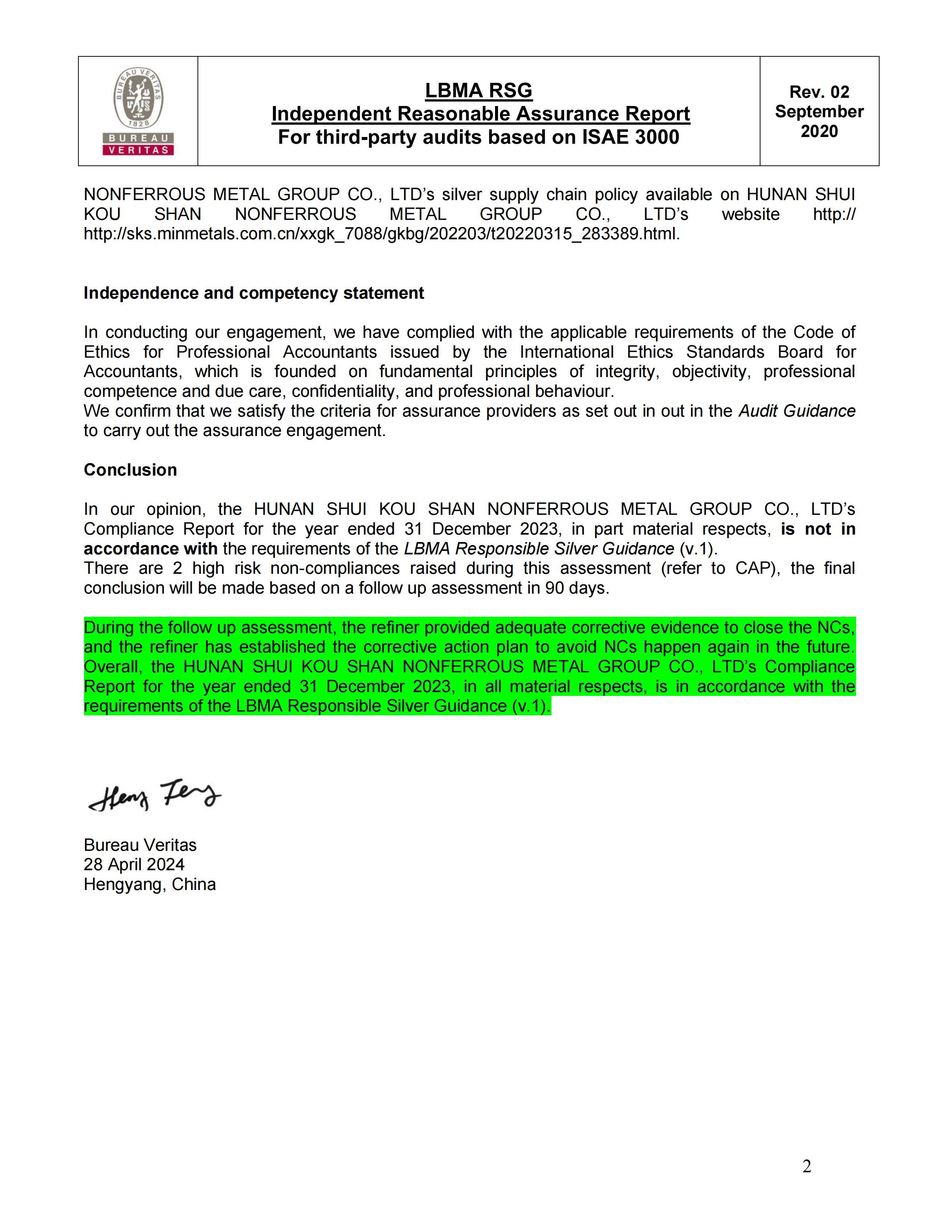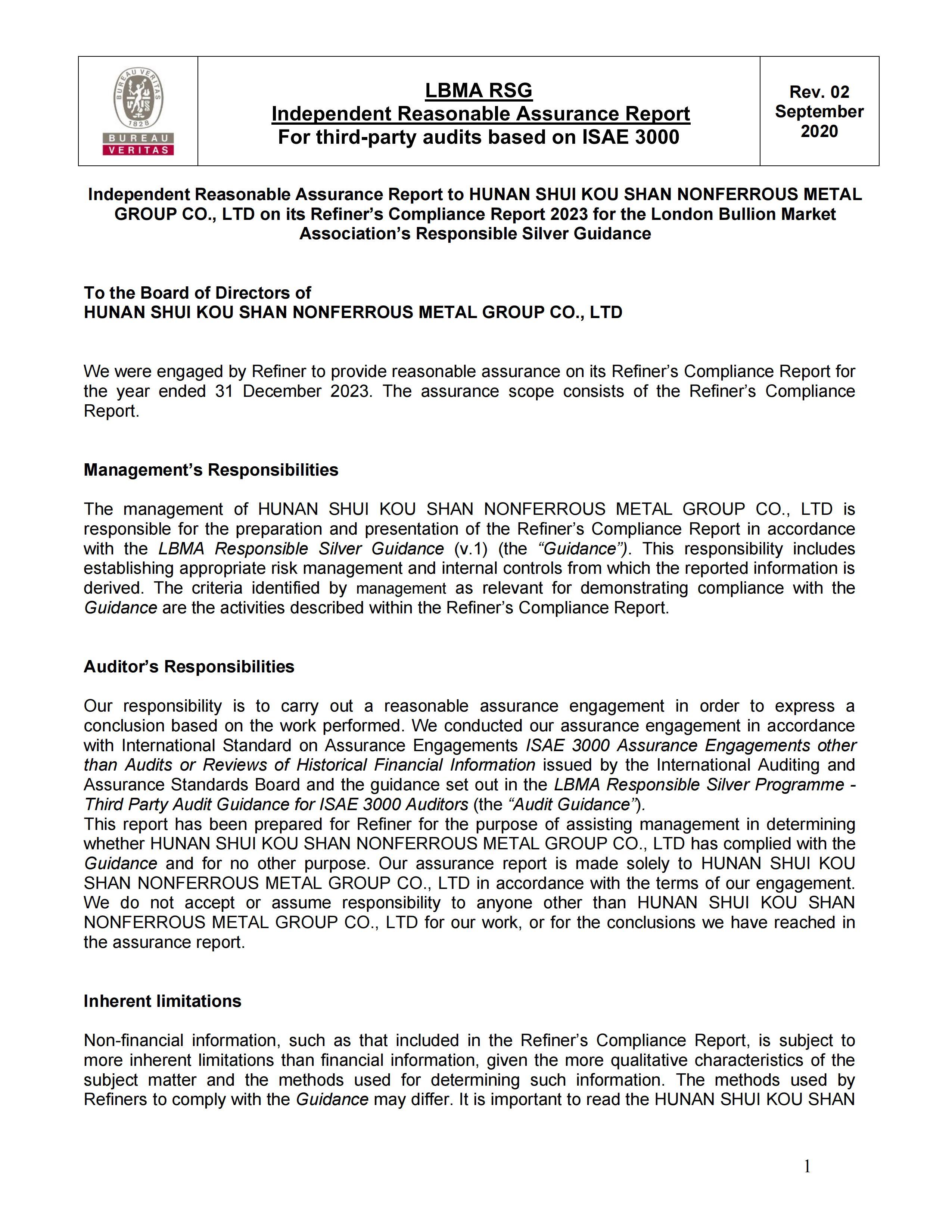 LBMA RSG 2023年度已批准的审核报告