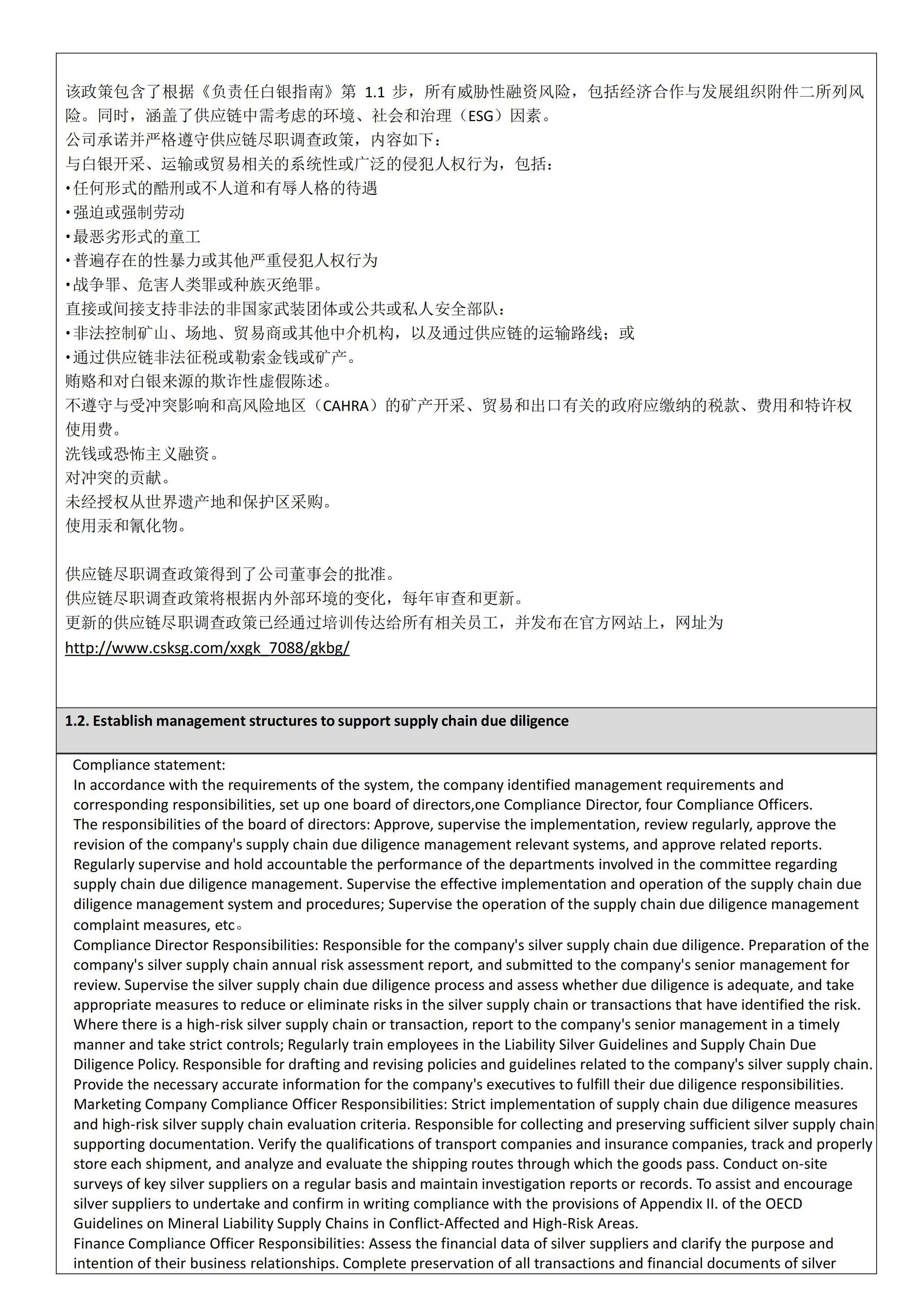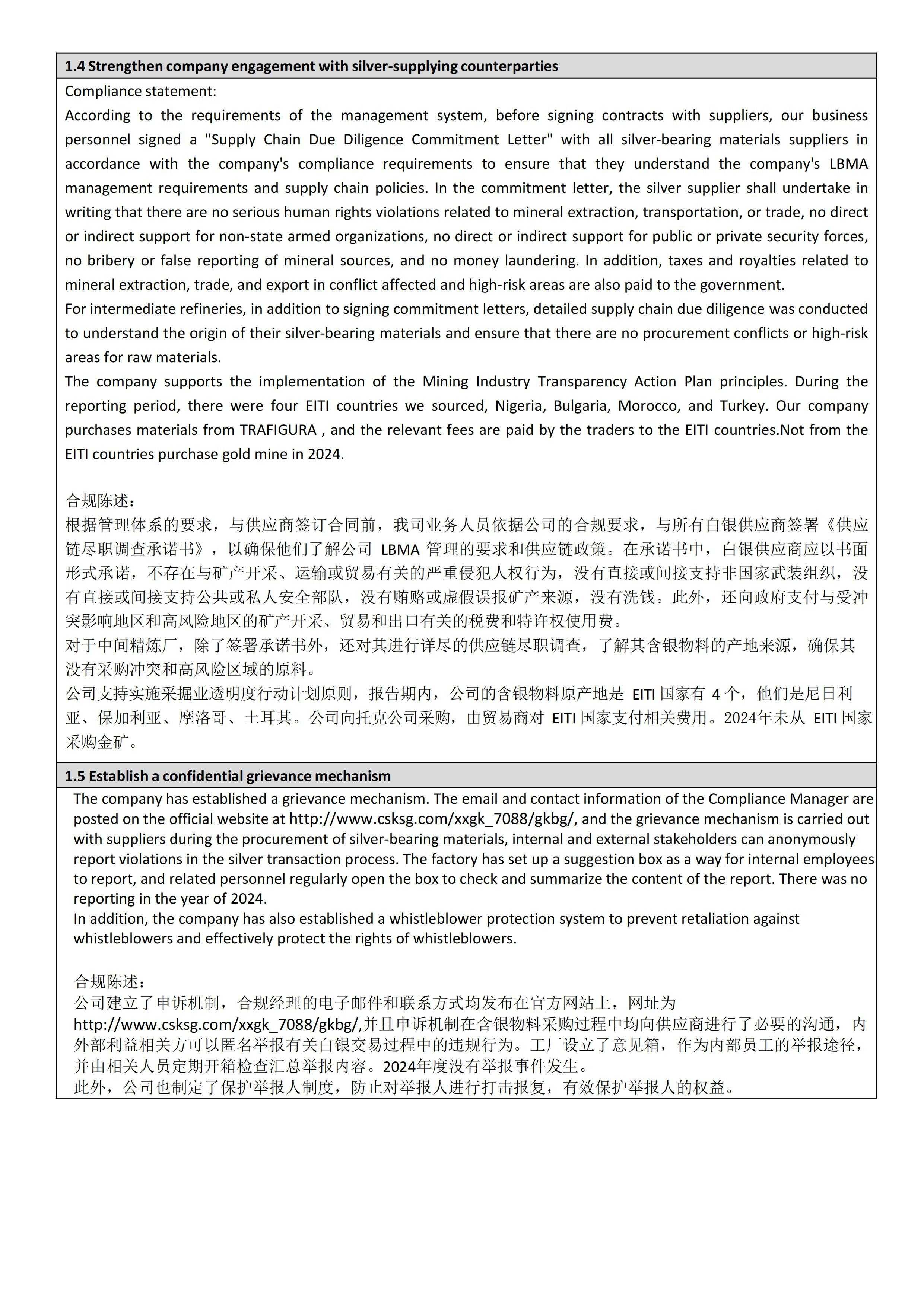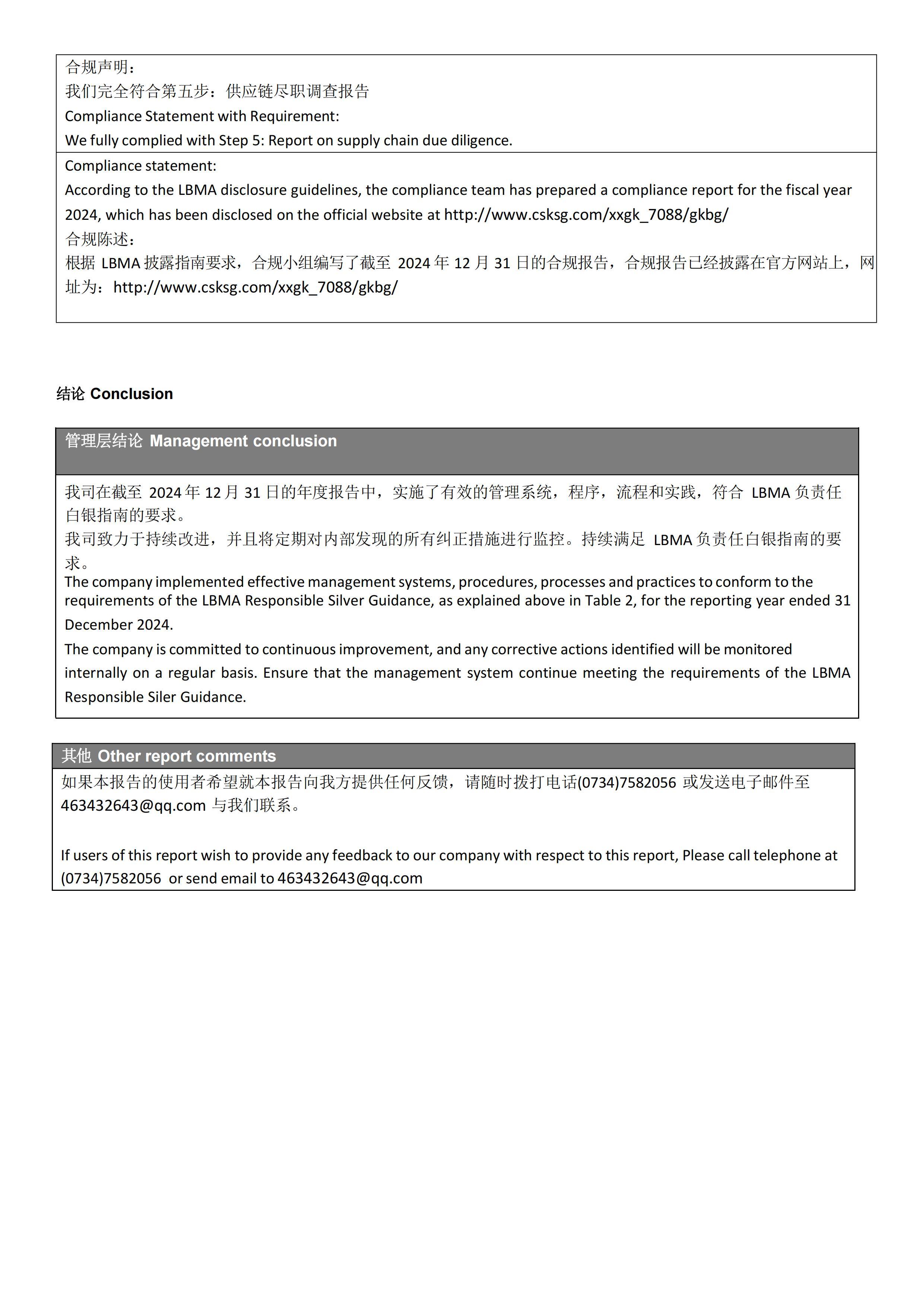 Hunan Shuikoushan Nonferrous Metals Group Co., Ltd. LBMA RSG 2024 Refiner’s Compliance Report